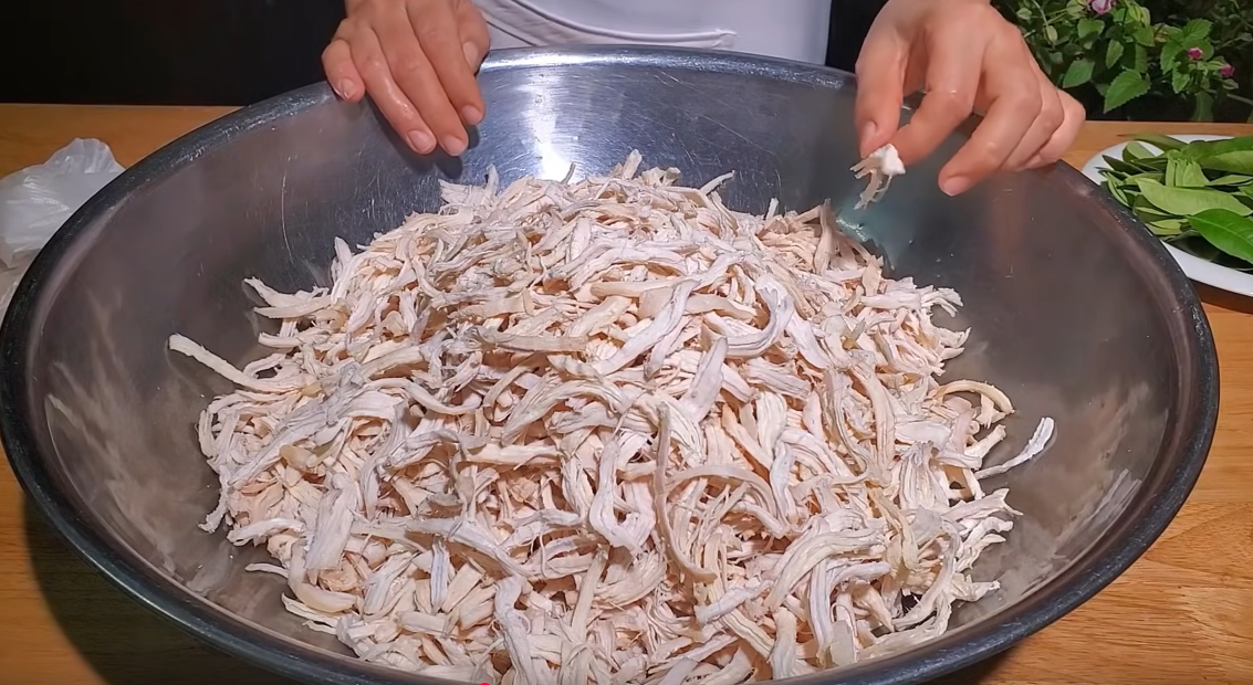 Dann in Eiswasser auskühlen und danach zerrupfen.