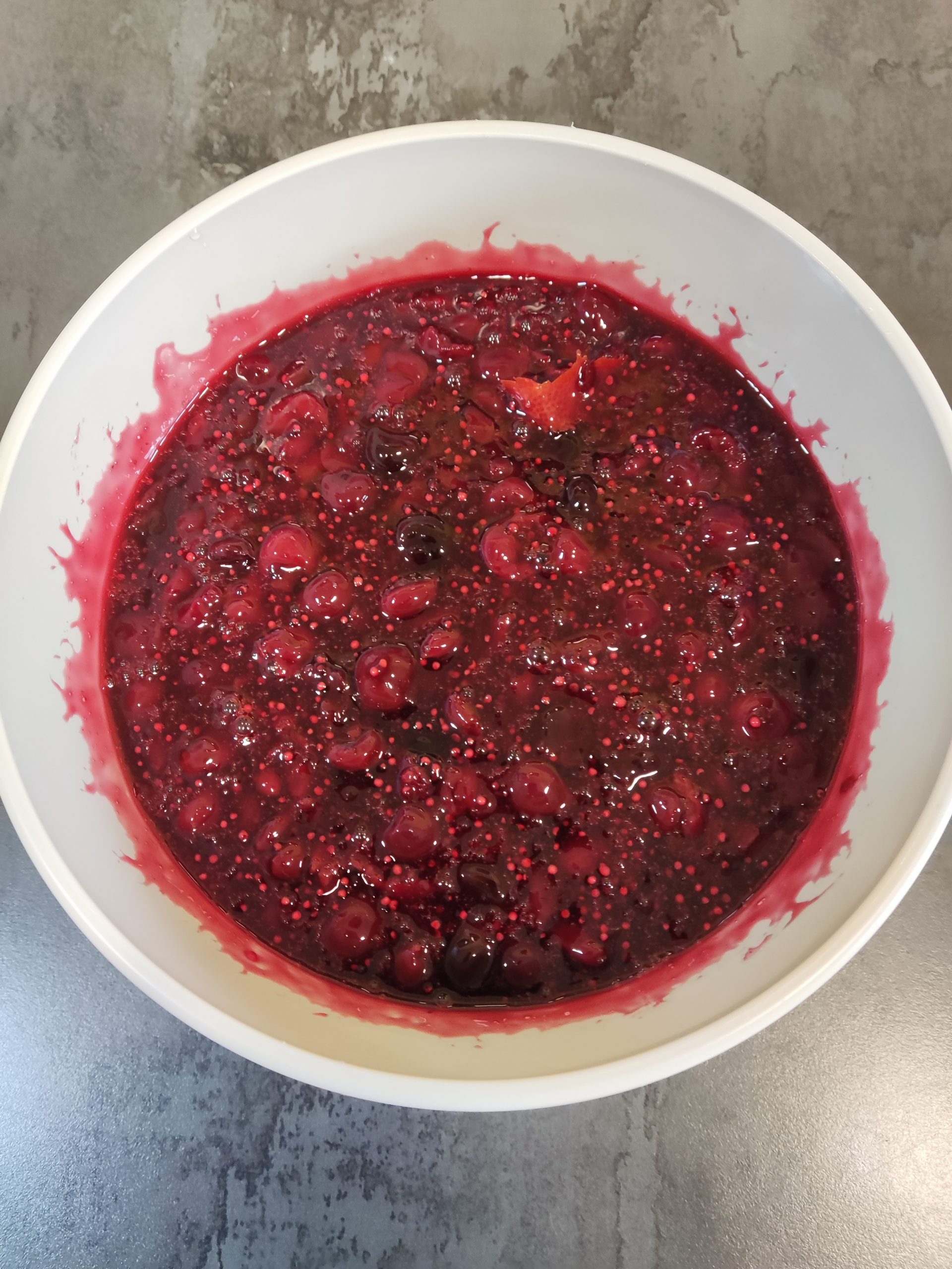 Das Obst bzw. die Beeren und ca. 250 ml Saft oder Wasser mit dem Zucker oder auch Honig kurz aufkochen. Die Früchte abgießen, den Fond dabei auffangen. Nun Sago, Sternanis, Zitronenschale und zwei Nelken dazugeben und ca. 20 Min. köcheln lassen. Gelegentlich dabei umrühren. Die Früchte nun wieder dazu geben und einmal aufkochen. Anschließend erkalten lassen.